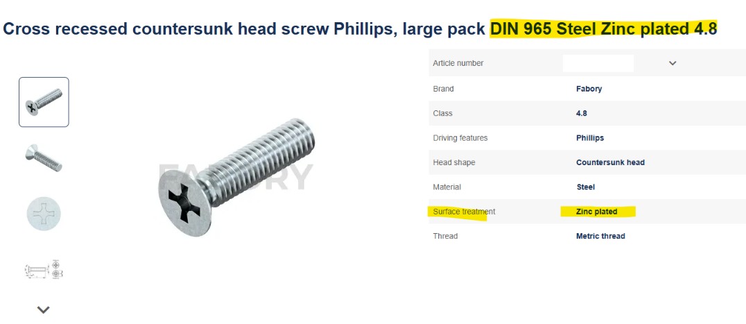 Šrouby se zapuštěnou hlavou a křížovou drážkou Phillips, DIN 965, M2 x 16, typ H 4.8, pozinkované, 648 kusů