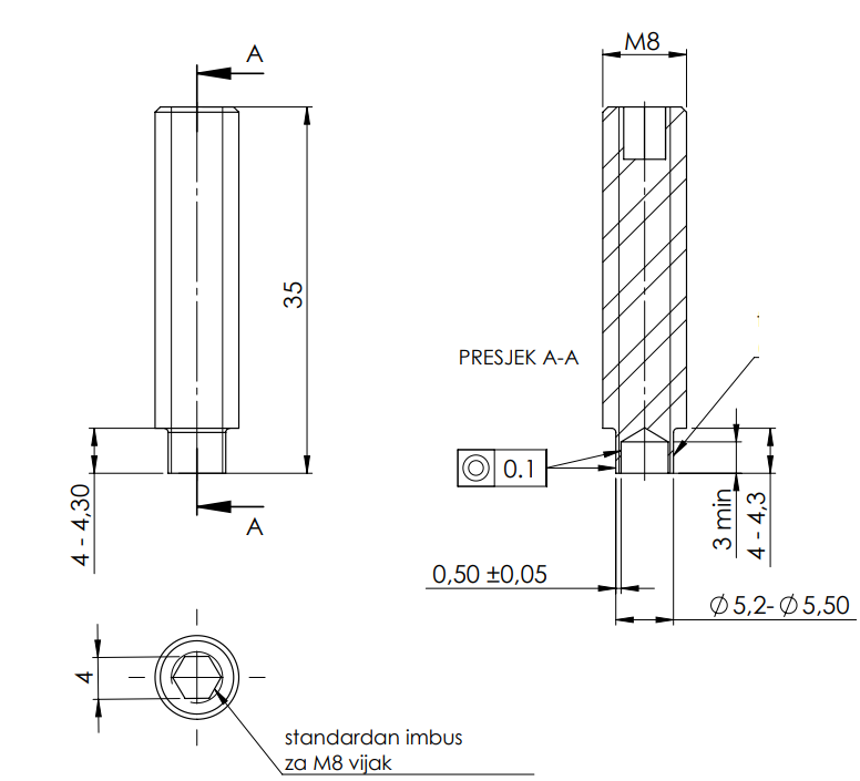 Poptávám: Výkresový šroub s vnitřním šestihranem M8x35mm A2
