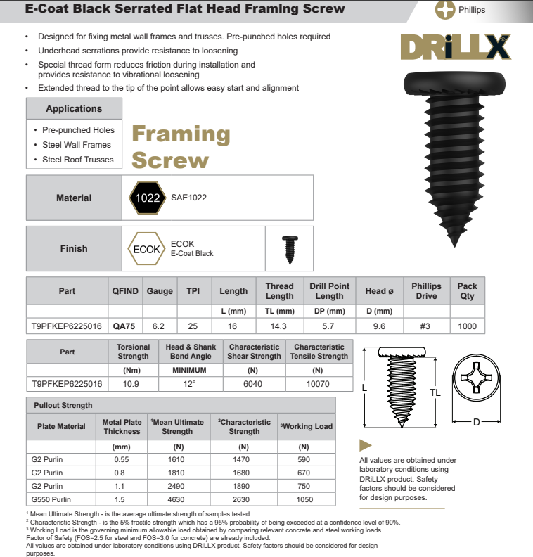 We are interested in purchasing 500,000 pcs of M6.2 x 16mm serrated flat head drive framing screws (E-Coat Black) or something similar. I have a attached an image.